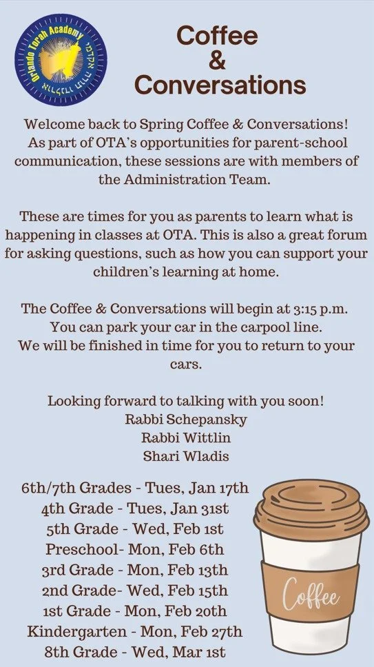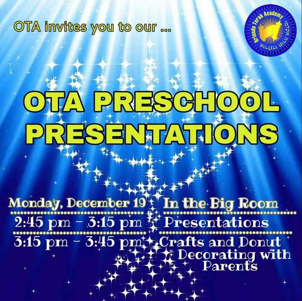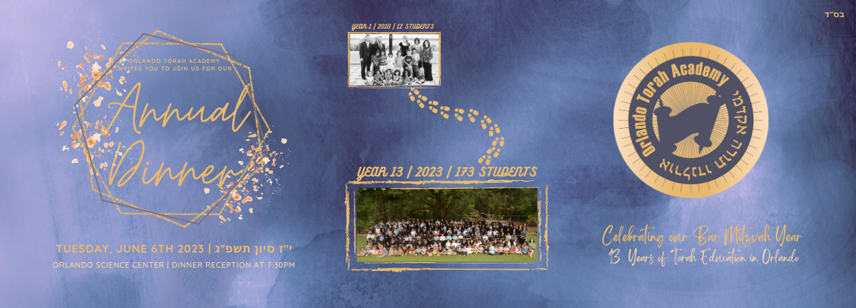 School Calendar Featured Events Jun 6 OTA Annual Dinner Tuesday, June 6, 2023 7:30 PM 10:55 PM Orlando Science Center (map) Google Calendar ICS You’re invited to our Annual Dinner Please join us as we Celebrate our Bar Mitzvah Year: 13 Years of Torah Education in Orlando Learn more and RSVP View Event → Dec 21 OTA Chanuka Party Wednesday, December 21, 2022 3:00 PM 4:30 PM Orlando Torah Academy (map) Google Calendar ICS View Event → Dec 13 to Dec 14 Annual Matching Campaign Fundraiser Tue, Dec 13, 2022 10:00 AM Wed, Dec 14, 2022 10:00 PM Orlando Torah Academy (map) Google Calendar ICS View fullsize View Event → Dec 6 OTA Book Fair Family Night Tuesday, December 6, 2022 4:00 PM 5:30 PM Orlando Torah Academy (map) Google Calendar ICS View fullsize View Event → Aug 18 First Day of School Thursday, August 18, 2022 7:45 AM 2:50 PM Google Calendar ICS See Photos from the Beginning of the 2022 School Year View Event →